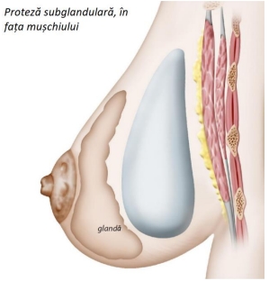 subglandulară (pre musculară), unde protezele sunt plasate direct în spatele glandei, în fața mușchilor pectorali;